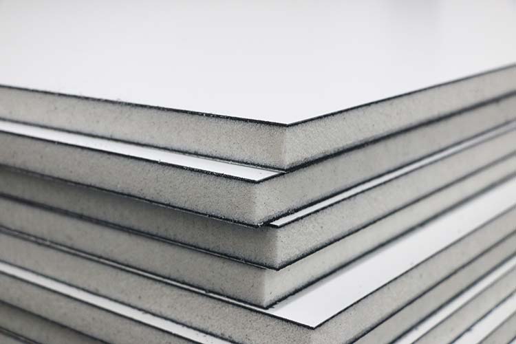 The production method of thermoplastic composite PET sandwich panels is different from other foam sandwich panels. No adhesive is used in its production process. It is manufactured by thermal fusion (heating melts the thermoplastic skin to composite it with the PET core material) . This is a disruptive and innovative method of manufacturing foam sandwich panels that not only has more stable performance but is also cheaper.